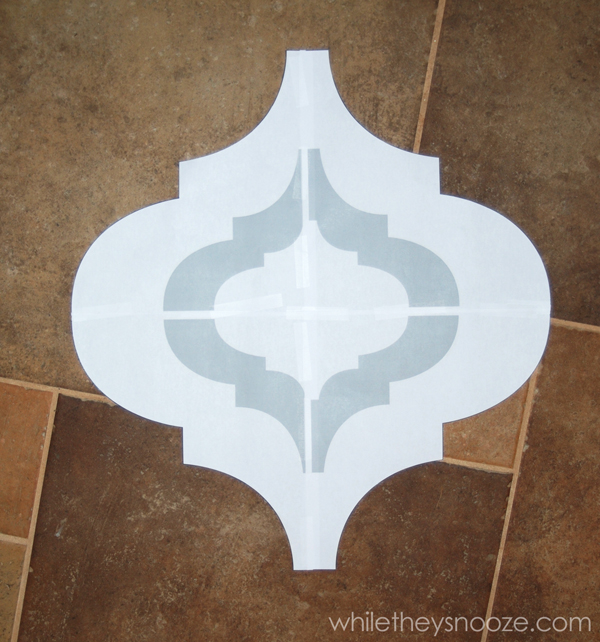 1. Find a Moroccan-ish shape you like online and print it out whatever size you want (Google images is a good place to go). The larger you go... the less work it is. I had to tile mine onto 4 sheets of paper, then tape them together. Don't worry about the design being all blurry if it is, you can fix that in a minute. Once it's all taped, fold the paper in quarters and cut out your shape. When you unfold it, you will have a symmetrical pattern even if it started off blurry. Here is the shape I used if you want to do the same.